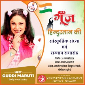कार्यक्रम में देशभक्ति गीतों, सांस्कृतिक प्रस्तुतियों, वीर जवानों व समाज के प्रेरणास्रोत व्यक्तित्वों के सम्मान के साथ-साथ भारत की गौरवशाली संस्कृति और संविधान की भावना को जीवंत किया जाएगा। इस कार्यक्रम को और भी भव्य बनाने के लिए बॉलीवूड कलाकार गुड्डी मारुति और हेमंत बीर्जे के साथ टी-सिरिस के सिंगर मनोज वर्मा भी आपके बीच मौजूद होंगे, यह आयोजन केवल एक कार्यक्रम नहीं, बल्कि हर भारतीय के दिल में देश के लिए गर्व की गूंज जगाने का प्रयास है।